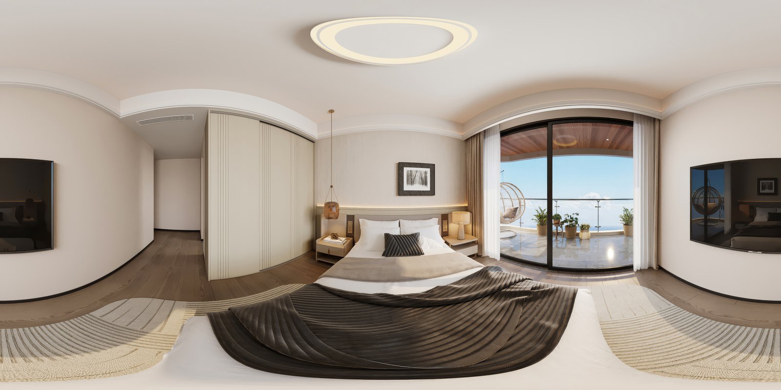 Find your peace in the "Seaside Serenity" (Type D) apartment. This spacious two-bedroom unit is crafted to offer the calm of seaside living. Its defining feature is a super-wide 270-degree terrace that floods the space with natural light and offers expansive views. The layout strikes a perfect balance between active living areas and restful private spaces.